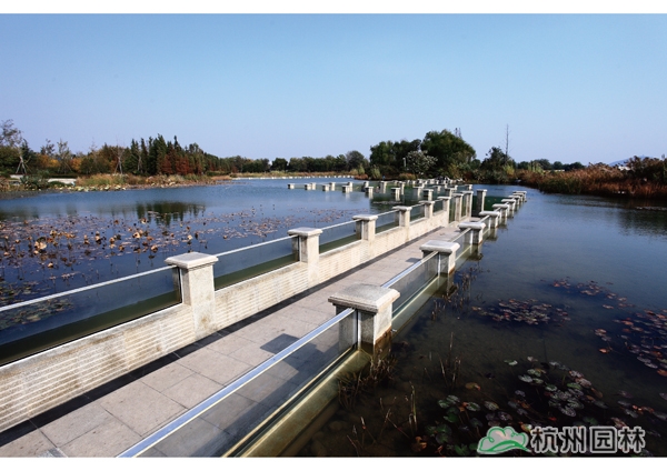 該工程位于徐州市云龍湖風景區南岸,內容包括綠化種植、土方造形、硬質鋪裝、沉水廊道、木結構、駁岸施工等。工程集大氣恢弘的園林景觀建設和科學合理的生態修復于一體,體現了山水的自然交融,把厚重的歷史文化與現代自然景觀融合在一起,不但突破了千園一面的園林規劃瓶頸,而且較好地將“北雄南秀”的城市特質融入其中,成為生態徐州建設的一個新樣板。