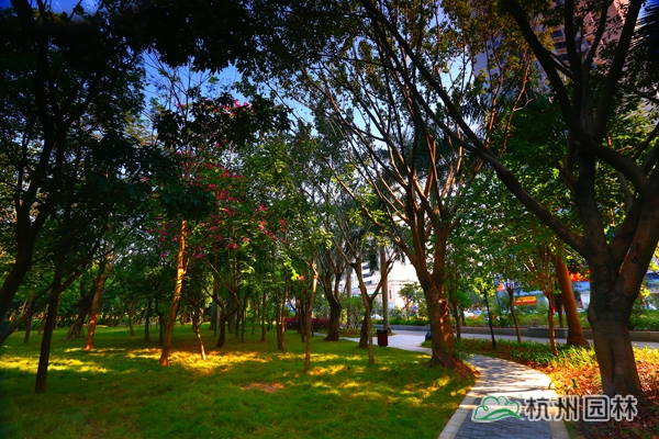 深圳市桂花路都市公園帶工程是一個(gè)改造提升工程,長約1.7公里,綠化恢復(fù)總面積約10萬平方米,施工范圍包括道路中央分車綠帶、道路分車綠帶及路旁綠地,施工內(nèi)容包括種植土回填、綠化種植、綠化灌溉等工程。自2012年5月開工,2013年6月竣工,由杭州市園林綠化股份有限公司承建。榮獲“2014年度浙江省優(yōu)秀園林綠化工程金獎(jiǎng)”。