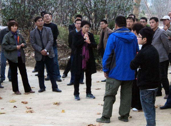 云龍湖珠山景區工程是徐州市2011年的一項重點綠化工程,李局長對該項目一直非常關心和重視,繼9月23日陪同市委書記曹新平視察工地之后,此次,園林局又組織幾個重點景觀工程的項目經理和主要負責人來工地觀摩指導,察看工程進度。在工地現場,李局長邊走邊看,并不時詢問。當行至榆樹下沉廣場時,李局特別指出此處的整體布局、植物配置、景石擺放等都很合理,很有特色,為工程效果增色不少,并提出新的指示,希望我方能夠再接再厲,精益求精,將該項目打造成徐州2011年的一項精品工程。