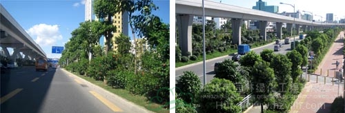 如今,開車行進在這條道路上,干凈整潔的路面、開闊通透的視野、清新自然的景觀,給人帶來閑適、愜意的感覺?!耙匀藶楸荆鹬刈匀弧钡木G化理念,體現在景觀中的每個細節;自然環境與城市環境的密切結合,使高架橋的道路通行功能與橋下中央綠化帶的生態功能有機融合。整條道路,不僅體顯出深圳這個濱海大都市獨有的景觀特色,更彰顯出這個城市的生機活力與熱情奔放。