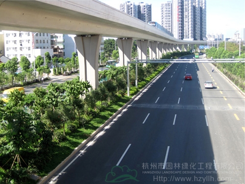 該工程最大的特色和亮點為:“以人為本,尊重自然”、“ 處處有綠葉,無處不飛花”等自然生態的設計理念貫穿始終;中央綠化帶位于高架橋下,長勢茂盛的各類植物形成一條繽紛絢麗的彩帶擁簇著高架橋段,使整條橋段與綠化景觀有機融合。2012年,該工程榮獲中國風景園林學會“優秀園林綠化工程金獎”。