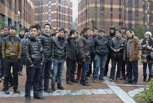 每到一個(gè)工程現(xiàn)場,工地負(fù)責(zé)人都先介紹工程的施工情況,然后,帶領(lǐng)大家進(jìn)行參觀,并隨時(shí)解答觀摩組一行提出的各種問題。每項(xiàng)工程觀摩結(jié)束的時(shí)候,三位專家都會集中點(diǎn)評,從苗木種植、植物搭配、水景營造、地形整理等各方面指出工程施工中存在的優(yōu)勢與不足,并提出需要改進(jìn)的地方。