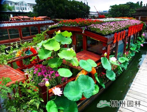 據杭州園林園藝種業事業總部、青山湖·花園中心園藝師王元元介紹,為了增強荷花船的觀賞性和藝術性,設計人員將船體“細分”成不同區域,因地制宜進行植物布景。