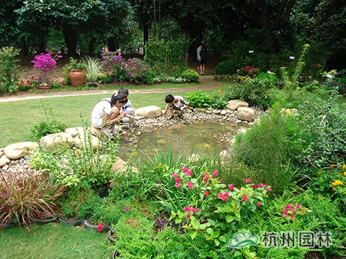 走進園內,蜿蜒的溪流和溪岸邊的景致野趣妙生,一下子撲入視野,清澈的溪水、光滑的卵石、可愛的小蝌蚪,與岸邊的銀邊菖蒲、水生鳶尾、花葉美人蕉、花葉蘆竹等水生植物一起,營造出生態、自然的河流景觀。“這條溪流,其實是我們杭州的母親河——錢塘江的縮影,通過這條溪流的營造,我們想呼吁更多的人保護生態、愛護環境,讓我們的母親河永遠干凈、清澈?!惫绾喍痰脑捳Z中,透露出的是一名園林人渴望更多人關注水生態環境的殷殷期盼。