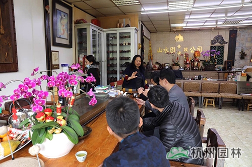 山水園林景觀公司的楊枚良女士有多年的櫻花引種、繁育、栽培、應(yīng)用經(jīng)驗,在臺灣業(yè)內(nèi)素有“櫻花女王”之稱。考察期間,考察人員特地前往山水園景觀公司拜訪楊枚良女士,交流櫻花引種、生產(chǎn)、栽培經(jīng)驗,并前往山水園林景觀公司的櫻花苗圃基地參觀,實地考察臺灣地區(qū)主要栽培櫻花品種的生產(chǎn)、栽培情況。