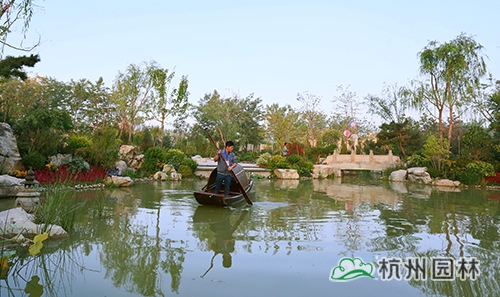 蜿蜒的溪流與美麗的花境,演繹一出春秋戰國時期西施浣紗的美麗傳說。