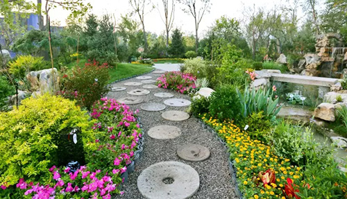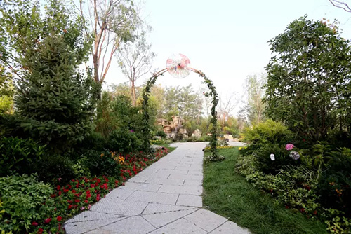 考慮到銀川的干燥氣候,垂直綠化墻植物的保濕成為難題。“浙江園”垂直綠化墻以無紡布為墻體材料,使用保濕性強的基質(zhì),優(yōu)選植物種類,同時搭配滴灌系統(tǒng),保證了綠化墻鮮花擁簇的景象。展園內(nèi)的垂直綠化墻設(shè)計簡潔、曲線優(yōu)美,與以錢塘江文化為主題的背景墻相互映襯,共同展現(xiàn)了新時期浙江園林景觀的不斷發(fā)展與創(chuàng)新。