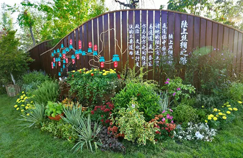 《絲?路》:“壯志西行追古蹤,孤煙大漠夕陽中。駝鈴古道絲綢路,胡馬猶聞唐漢風(fēng)。”昔日西域古道的繁華猶在眼前,通過“絲?路”花境的營造,重走絲綢之路,感受不同時代的變化,寓意在新時期全面推動絲綢之路經(jīng)濟帶的過程中,我們要以史為鑒,傳承絲綢文化,走好新絲路。
