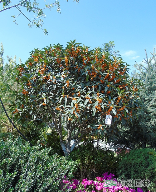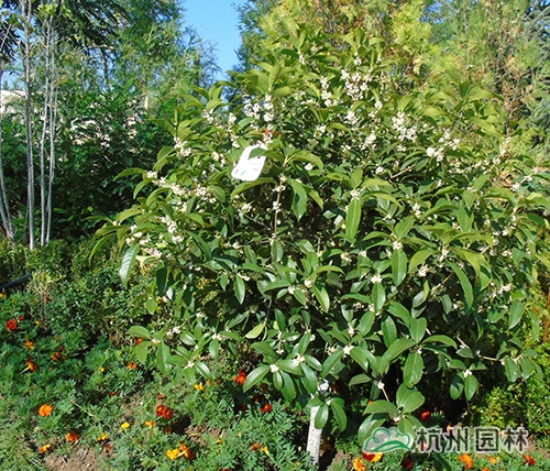“浙江園”里應(yīng)用的桂花品種以丹桂和銀桂為主,共計50余棵,包括大喬木和小球類。為保證開園期間的觀賞效果,這些桂花被提前運(yùn)送至銀川,利用當(dāng)?shù)氐牡蜏丨h(huán)境誘使其完成花芽分化,終于在九博會開園時營造出了桂花滿樹、滿園飄香的氛圍。