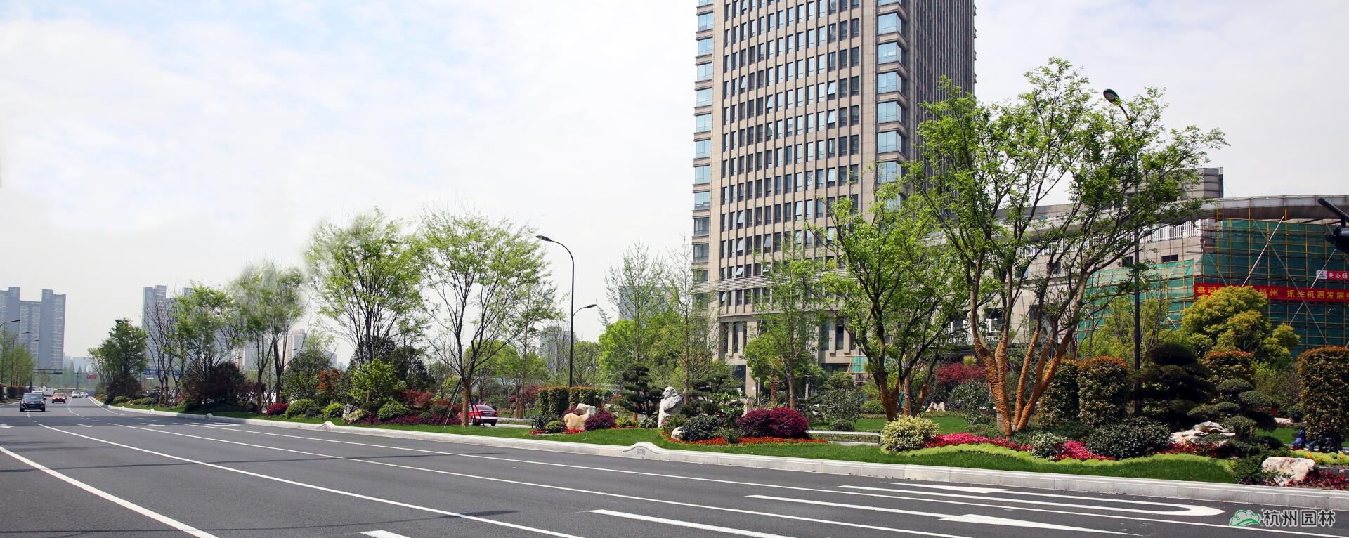 新塘路位于杭州城市東部,是連通杭州火車東站與錢江新城的主要交通要道,也是杭州G20峰會的主要迎賓大道。由杭州市園林綠化股份有限公司承建的新塘路(新風路-新業路)綜合整治工程景觀綠化I標段,南起新業路,北至曇花庵路,施工內容包括綠化種植、景墻、土方工程、硬質鋪裝等。