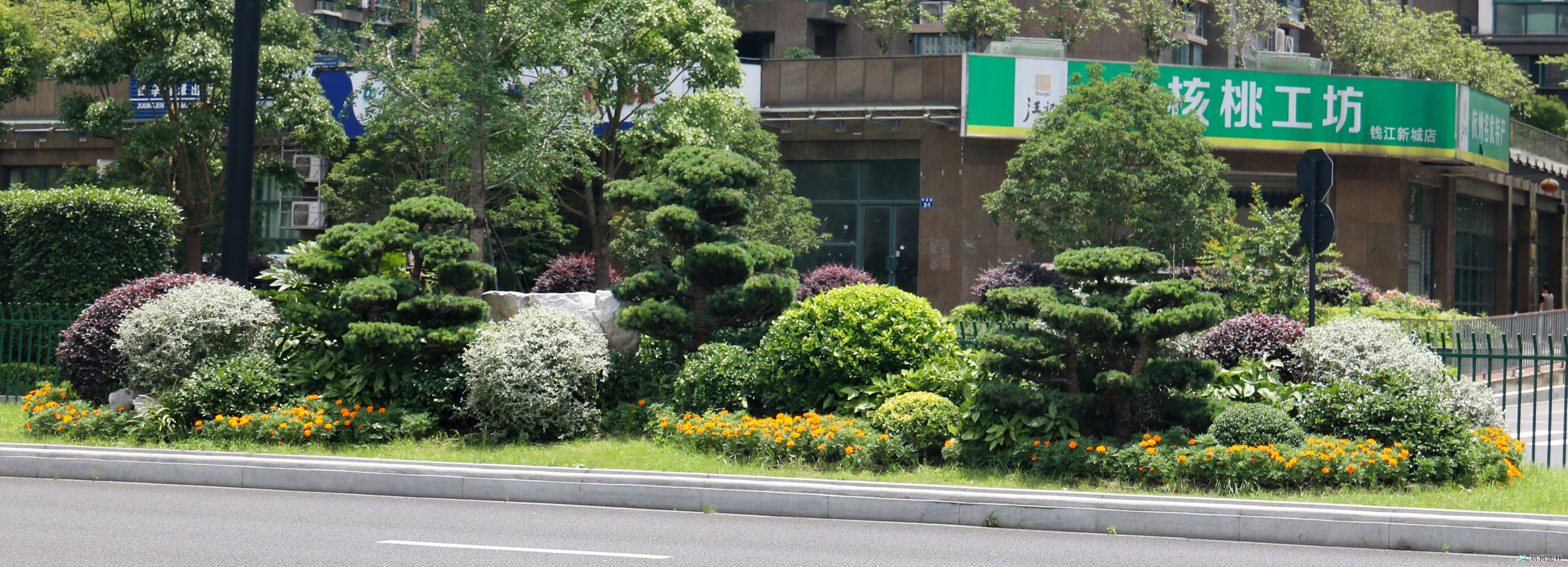 作為項目的施工方,為保證精品工程的創建,杭州園林在組織一支優秀施工團隊的同時,大膽嘗試運營新的組織架構,采用工程設計部+技術服務部的模式。其中,工程設計部協助項目經理與施工員,根據現場進行深化、優化設計,形成可操作、可落地的施工圖設計;技術服務部則由常務副總裁、景觀效果總監李壽仁親自帶領一支經驗豐富的專業技術隊伍,為項目建設提供景觀營造專業的現場技術服務與支撐。在造園手法上打破常規,把群落組合與盆景化手法運用于城市道路中央分隔帶,成為全國范圍內的一次創新之舉。