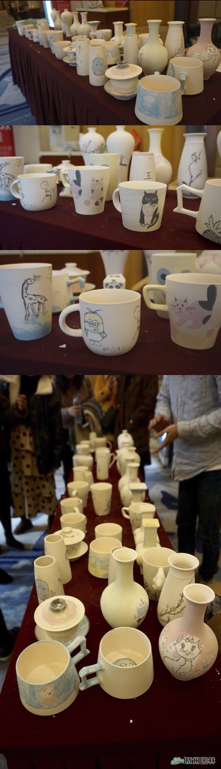 說起陶藝,大家想到的肯定是雙手扶著轉(zhuǎn)盤上的陶泥,捏出形態(tài)各異作品的場景,但今天我們玩點不一樣的。素胚固然清爽,但少了色彩的點綴,總會覺得好像黑白電影略顯枯燥。是的,這次我們將畫紙搬到了這些瓶瓶罐罐之上。認(rèn)真的女人真的很美,一幅幅生動的畫作在短短的一個多小時的時間里展現(xiàn)在了大家的眼前。有山水,有動物,有卡通畫,有說要送給家中寶寶的,也有說這代表了我們一家三口的。拿起畫筆的小仙女們,不再是那些個日常辦公室里的形象了,她們在今天,把自己的可愛、風(fēng)趣、溫婉、隨性等等面貌展現(xiàn)得淋漓盡致。