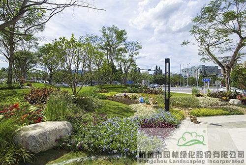 鹿珠廣場花團錦簇,遍植鳳凰木、火焰木,火紅、紫紅、藍色的花棲息在翠綠的草坪上,燦爛又熱烈,營造出色彩繽紛的感官體驗。藍天下,白云邊,走在街頭,到處都是花色如火、熱情奔放的鳳凰木棉,驚艷了來往路人的眼眸。不經意抬頭,就能邂逅最美的那一幕。