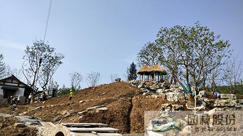 自今年四月份開工以來,杭州園的各項工作進展有序。截止目前,主體建筑、水系跌瀑、溪流假山等基本完工,大部分鋪裝已經(jīng)完成,展園景觀風(fēng)貌初見雛形。接下來主要進行喬木和大灌木的種植工作。正值夏季高溫時節(jié),為提高樹木的成活率,施工中多措并舉,提前將挑好的大樹進行修剪、斷根、噴灑營養(yǎng)液;采用通氣透水的材料包裹土球,進行容器假植;制定精細(xì)澆水養(yǎng)護方案等,使植物清涼度夏,早日綻放風(fēng)華。
