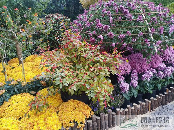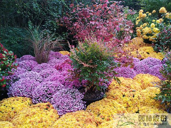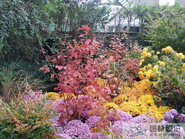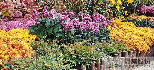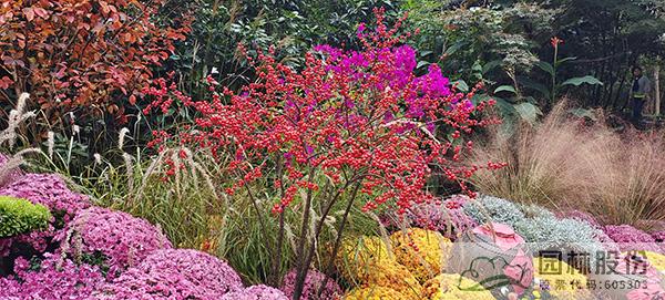 本次花境景觀中的主體雖是菊花,如球菊、蟹爪菊、乒乓菊、芙蓉菊等,但點綴其中的植物優良品種,使得整體花境更具獨特魅力。