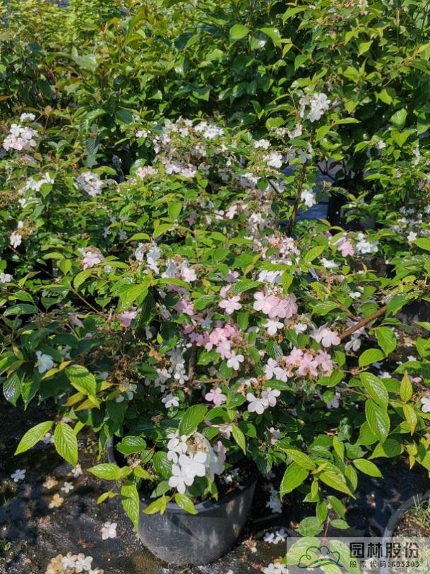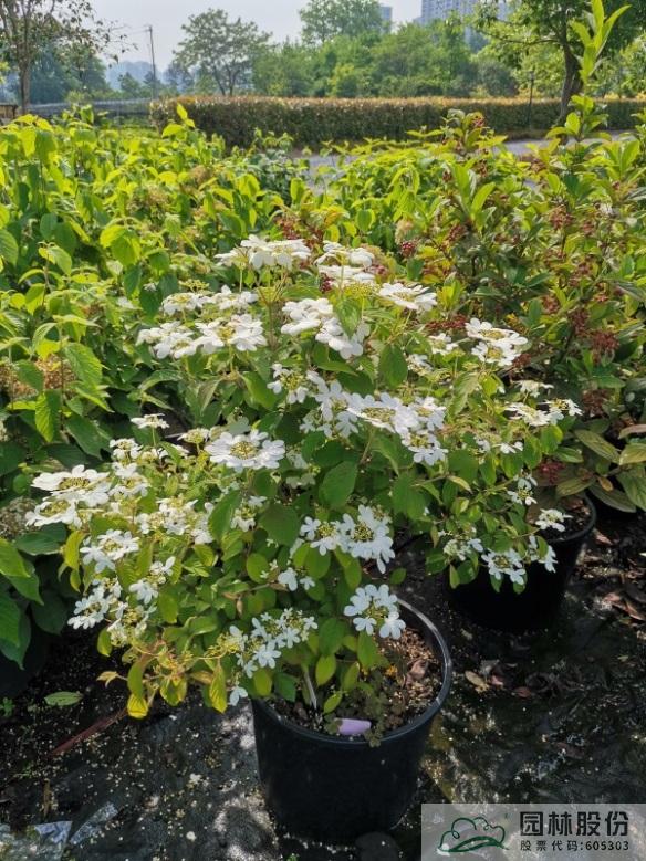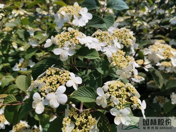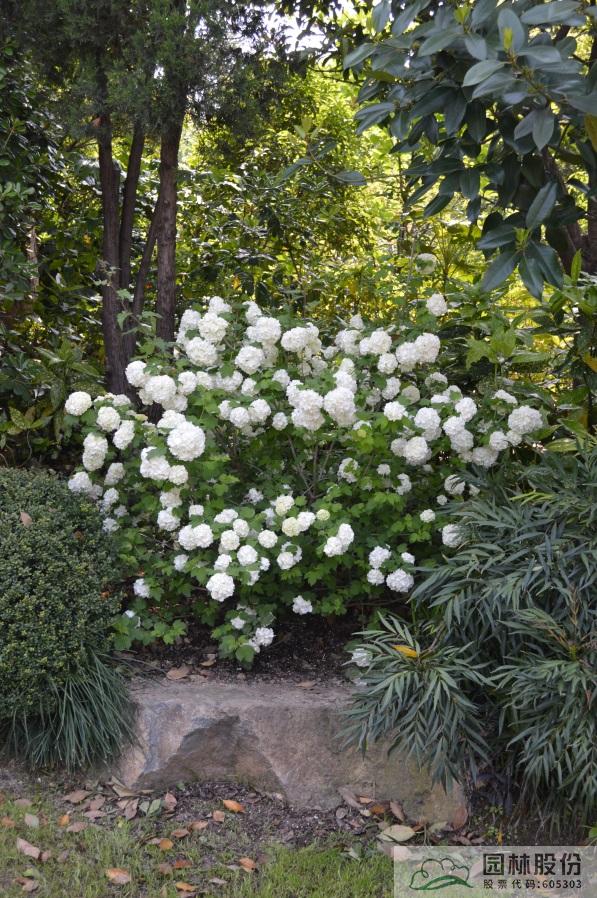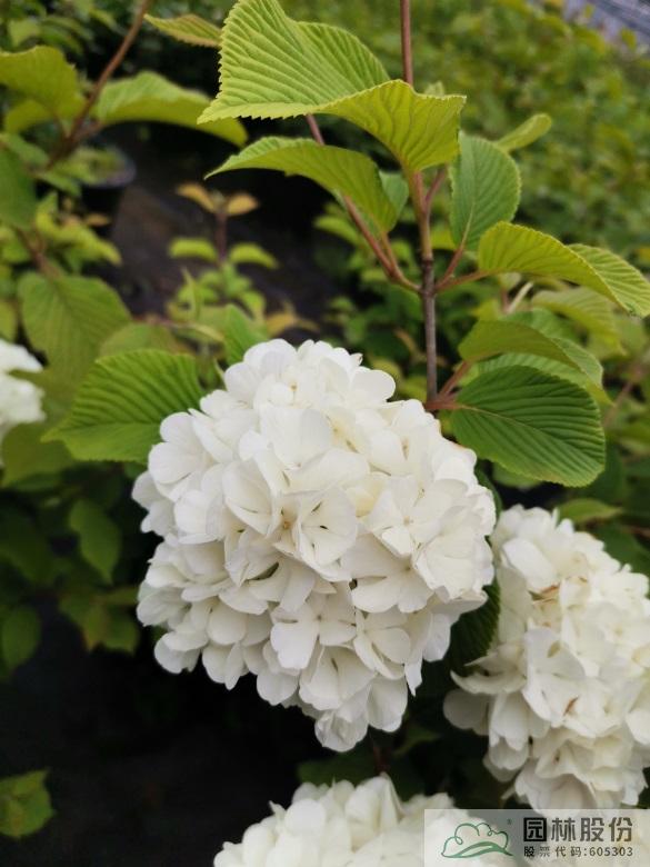 忍冬科莢蒾屬,落葉灌木,樹(shù)姿舒展。花序半球形,全為不孕花,開(kāi)花時(shí)滿樹(shù)白花猶如積雪壓枝,高潔素雅,花謝后則綠葉如碧,無(wú)論花葉均具有較好的景觀效果。生長(zhǎng)強(qiáng)健,喜歡散射光環(huán)境,適合工程應(yīng)用或庭院觀賞。
