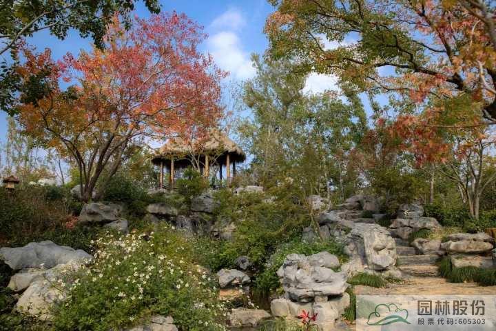 沿著山石小道拾級而上,便到了“問茶”展區,這里有一處茅草雙亭,是整個杭州園的制高點,可一覽全園風光,也可以遠眺園外風景?!熬G色、智能、節儉、文明”是杭州第19屆亞運會的辦會理念,此次也同樣運用到了杭州園中,在建園初期,建設人員開挖出了不少大大小小的山石,并巧妙地就地取材,最小化干預,修建成了山石小路,這些石塊鋪成的園路與太湖石營造的假山溪澗融合在一起,渾然天成。