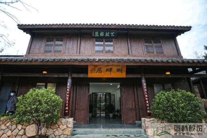 穿過四眼井旁邊的“真逸”院門,來到園內的第三大展區——湖居。這幢木石結構的二層小樓是杭州園內的主要建筑——“湖畔居”。在杭州園內,它依山傍湖,有茶園小院、古井山道相伴左右,面前是一片開闊的湖面,巧妙的設計將園里園外融于一景,本屆園博會的標志性建筑呂梁閣近在眼前。在這里可以品茗閑談,感受南宋風情;也可以憑欄遠眺,賞湖光山景。