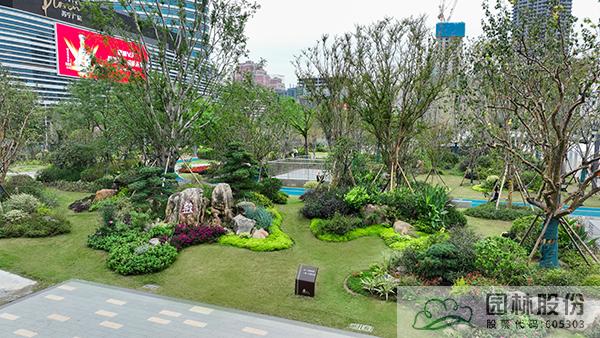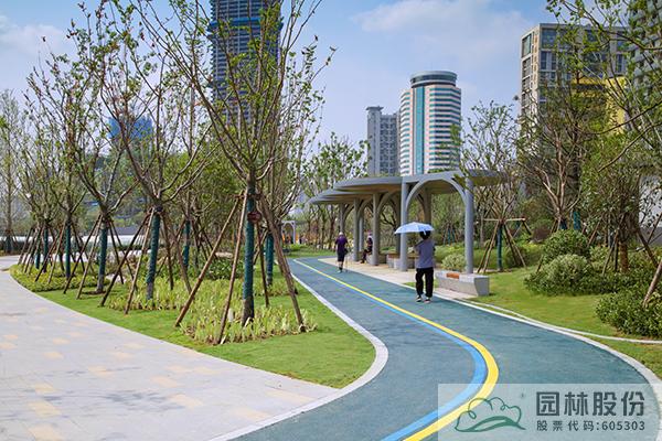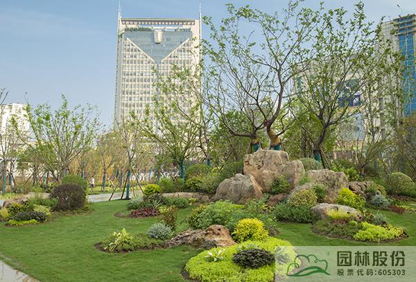 項(xiàng)目注重新優(yōu)植物的應(yīng)用,行道樹采用娜塔莉、中心廣場(chǎng)通道兩側(cè)綠地種植美國(guó)紅楓、中心廣場(chǎng)內(nèi)種植銀杏樹等色葉樹種。翠綠的枝葉相互掩映,樹下設(shè)有林蔭座凳,夏季可有“大樹成蔭”之景,市民可觀賞可乘涼,充分感受自然野趣。主道路行道樹為染井吉野等開花與色葉樹種,周邊綠地采用混合花境置石結(jié)合的配置手法,時(shí)花、低矮花灌木與景石自然搭配,并大量應(yīng)用了公司自主研發(fā)的繡球新品種,營(yíng)造景觀豐富的長(zhǎng)效花境景觀。