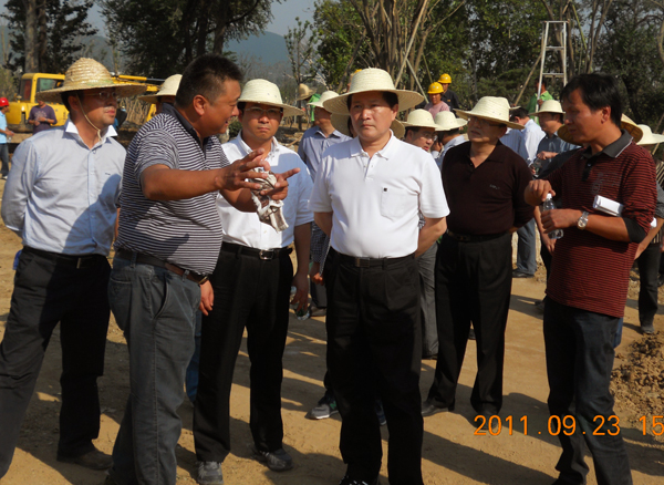 9月23日上午,徐州市委書記曹新平和副市長王昊、市政園林局局長李云峴等一行,來到云龍湖珠山景區景觀綠化工程施工現場視察,杭州市園林綠化工程有限公司常務副總李壽仁、營銷副總陳伯翔、徐州分公司總經理王世新、項目技術負責人來永川、徐中明等前往陪同。