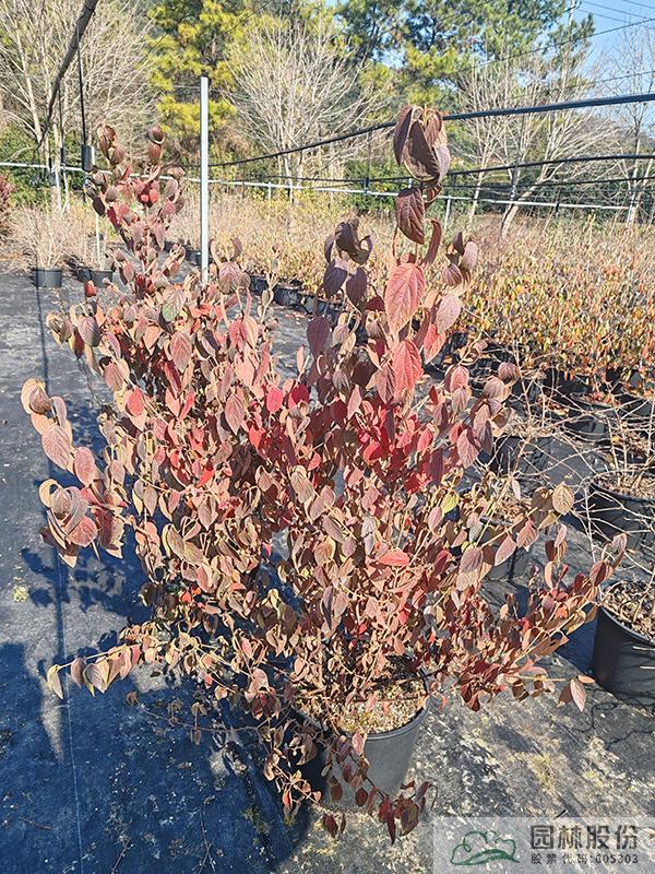 忍冬科莢蒾屬,半落葉披散狀灌木。花白色,花量大,花期6月。果紅色,果期長,通常10月至次年1月。秋季葉色變暗紅至鮮紅,通常10月開始變色,部分紅葉能一直保存至次年春天。病蟲害較少,生長速度較快,且耐寒。植株極耐修剪,適合工程應用或庭院觀賞。