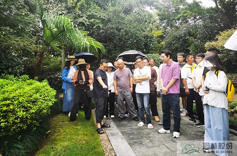 下午,學員們實地觀摩了占地近2萬平方米的室外景觀展示區。現代中式、自然中式、苔蘚園、巖石園、日式庭院等風格迥異的主題園,構成了一部立體的園林設計與施工的“教科書”。